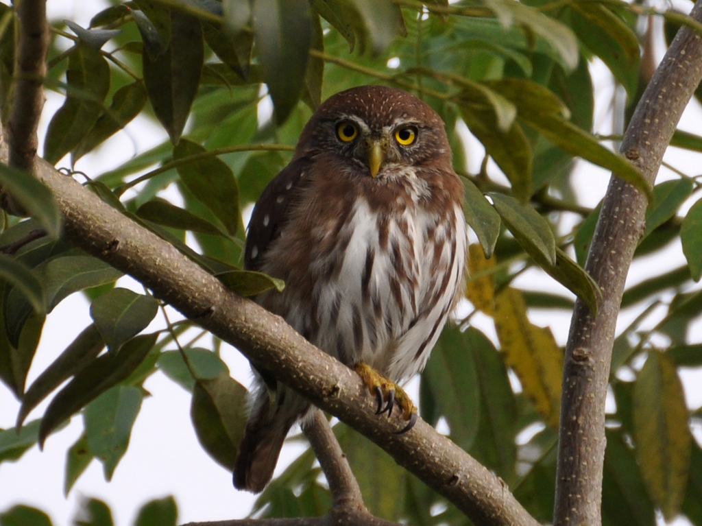 The Owl is small specie of genus of pygmy owl, measures 15.5 to 18 cm. The crown has many white streaks and the underside is white with brown or red-brown streaks.