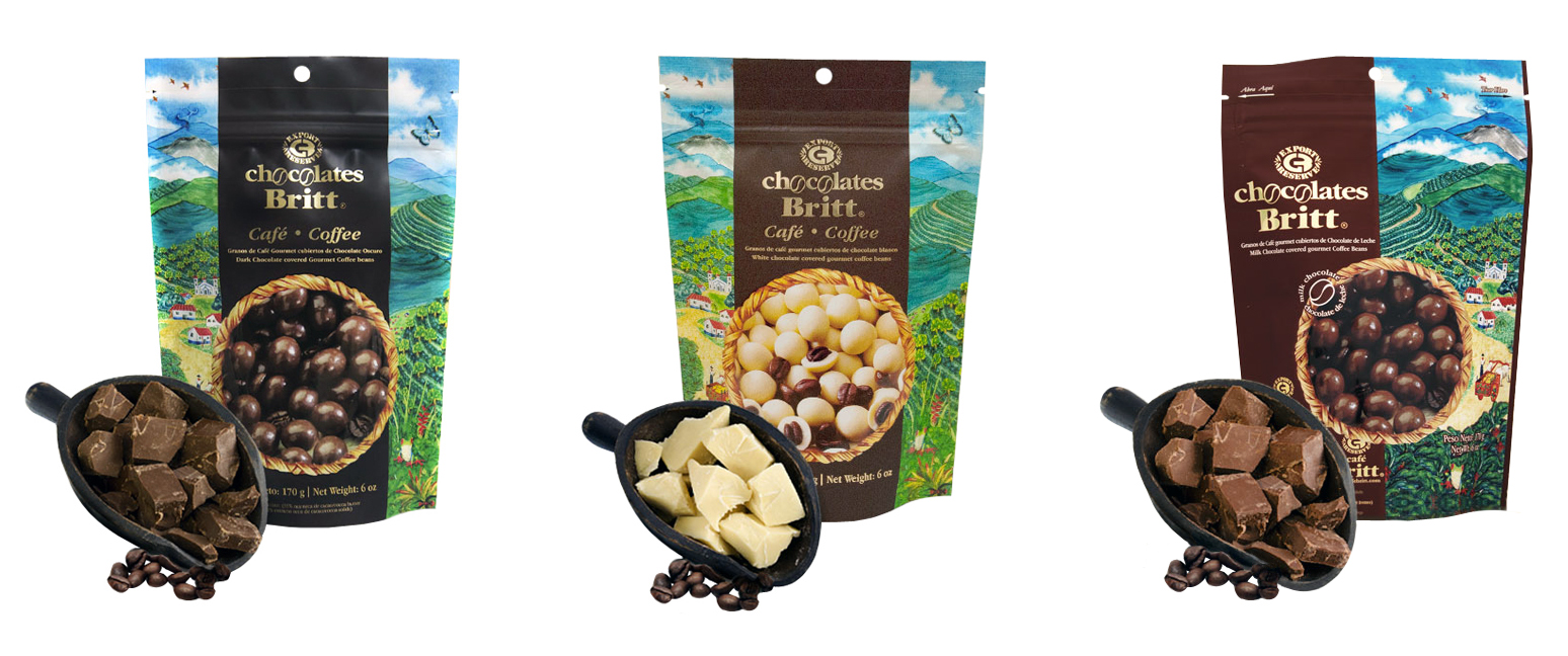 Latte Coffee with a twist! Café Britt 100% gourmet Costa Rican espresso coffee beans are carefully roasted and delicately dipped in cocoa butter white chocolate. Our coffee’s enticing aroma and the crunchy texture of our coffee beans complement the soft white-chocolate flavor for a soothing sensation that lingers in your palate.