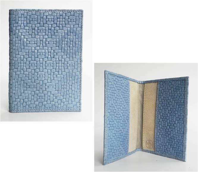 - Passport Holder, light blue embossed leather.