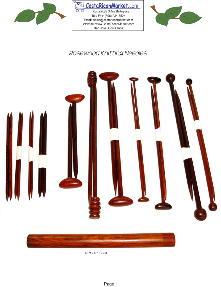 Costa Rica wholesaler of Rosewood knitting needles. These exquisite rosewood knitting needles are beautiful to look at and even better to hold. Visually and tactilely delightful, they are easier on the hands and wrists due to the wood's inherent flexibility and warmth and, they are necessary for smooth, 'catchless' work with certain fibers. Buy wholesale now!