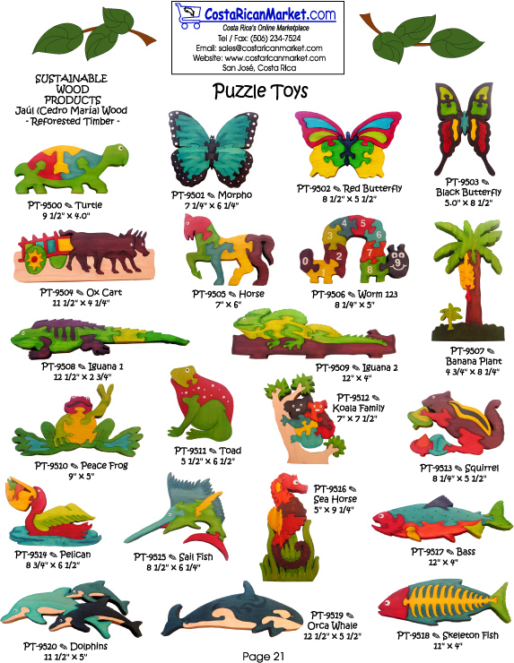 Wood Puzzle Toys - Creative and Colorful! Sustainable wood product made of reforested timber. A wonderful toy for kids & schools. Beautiful gifts for any occasion. Handcrafted by talented Costa Rican artisans.