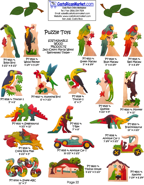 Wood Puzzle Toys - Creative and Colorful! Sustainable wood product made of reforested timber. A wonderful toy for kids & schools. Beautiful gifts for any occasion. Handcrafted by talented Costa Rican artisans.