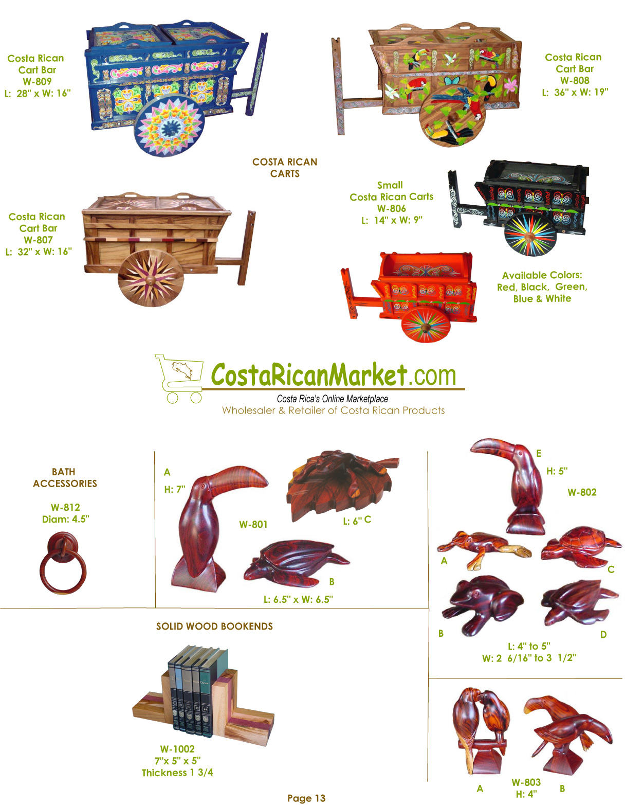 Costa Rican Carts, Handpainted Bar Carts, Wood Bookends, Small Wood Sculptures & Table Decorations