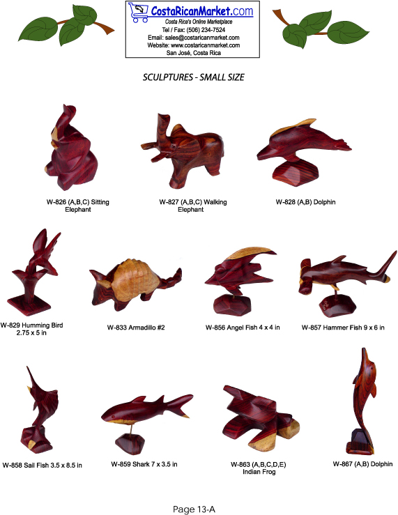 Costa Rica Rosewood sculptures are found in many designs. Enjoy a humming bird, elephant, dolphin, angel fish, hammer fish, sail fish, shark and frog. Buy wholesale now!