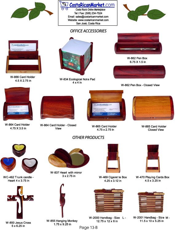 Costa Rica wood office accessories will make any office an exclusive area. We offer Rosewood business card holders, pen boxes and a ecological note pad.