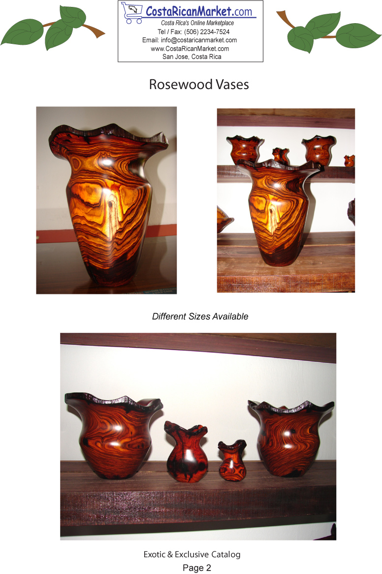 Costa Rica Rosewood vases are the newest members of our large woodcrafts family. This top quality product line will look great in any home or office. 100% Rosewood.