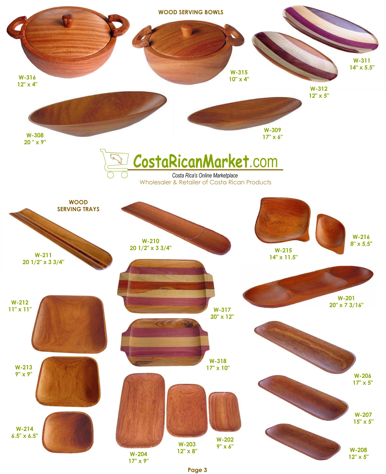 Enjoy wood bowls, trays, french bread trays and other. Rosewood and other exotic woods available. Handcrafted by talented Costa Rican artisans. Place your wholesale order today!