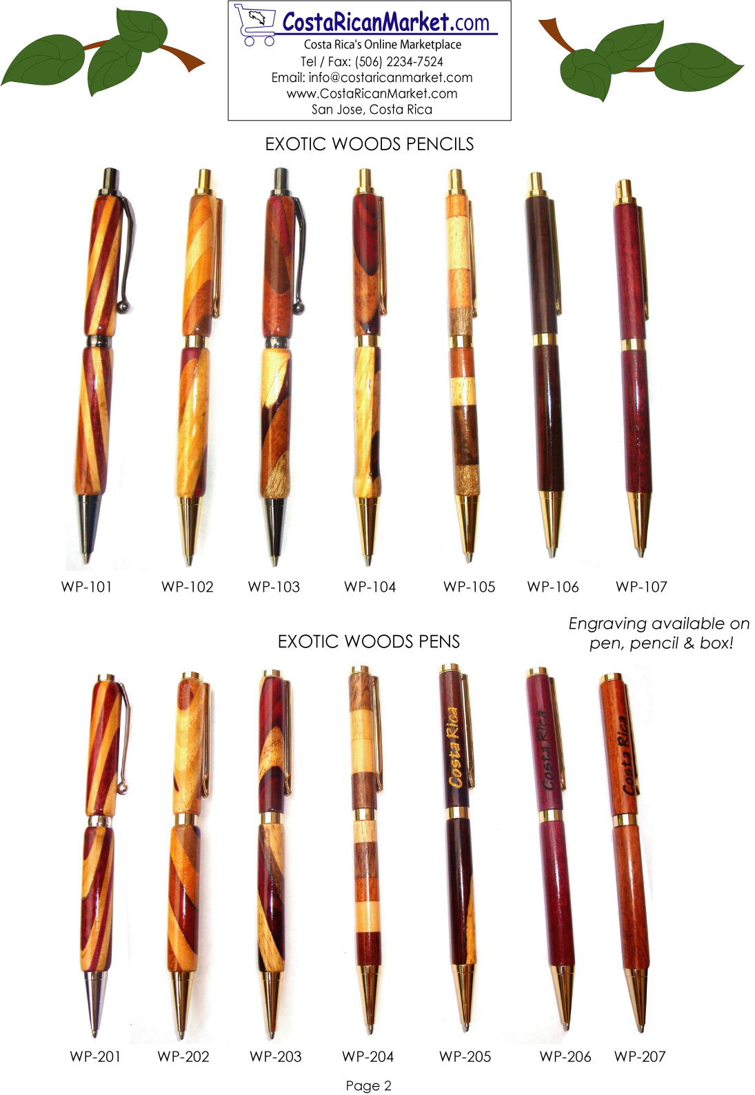 Enjoy the highest quality pens & pencils made by talented Costa Rican artisans. Engraving is available with your message or logo. Durable and attractive, the ideal promotional item or gift.