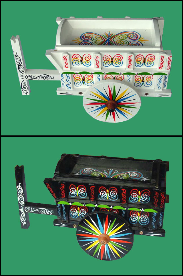 This typical cart is hand-painted by our artisans and represents an old fashion method of transportation still use by our peasants.