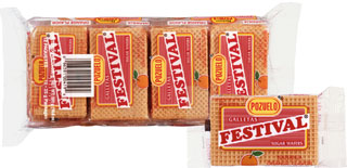 - Festival are wafers filled with orange fudge .