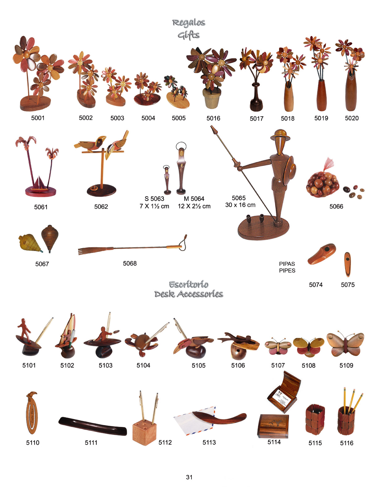 Costa Rica wood gifts & desk accessories will enhance the beauty of any home or office. Colorful wood pieces make each item unique. Some items are: Rosewood business card holders, wood bookmarks, wood flowers, wood Virgins and Quixotes, wood toucans, exotic wood rocks, wood pen holders, wood butterfly decorations and many more. Costa Rican artisans are real artists. Place your wholesale order today!